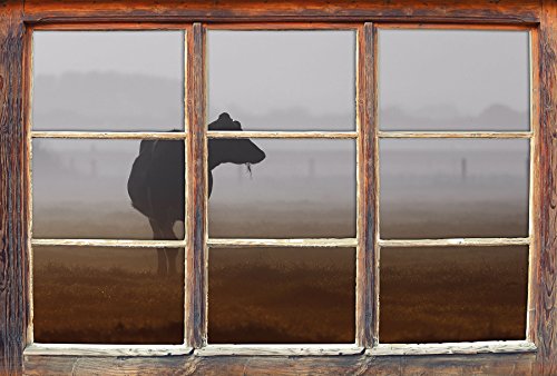 Stil.Zeit eine fressende Kuh auf der Weide B&W Detail Fenster im 3D-Look, Wand- oder Türaufkleber Format: 62x42cm, Wandsticker, [...]