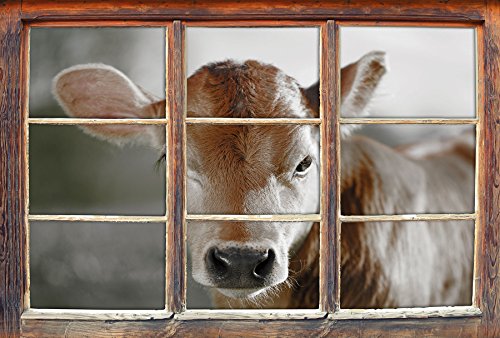 Stil.Zeit Junge Kuh Kälbchen B&W Detail Fenster im 3D-Look, Wand- oder Türaufkleber Format: 62x42cm, Wandsticker, Wandtattoo, [...]