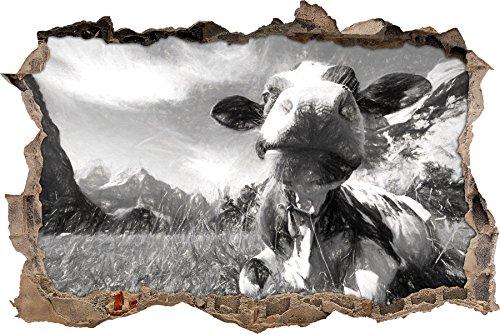 Stil.Zeit Kuh im Karwendelgebirge Kunst Kohle Effekt Wanddurchbruch im 3D-Look, Wand- oder Türaufkleber Format: 62x42cm, Wandsticker, [...]