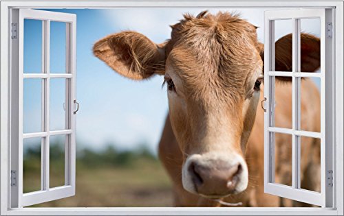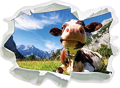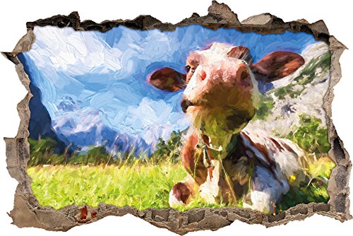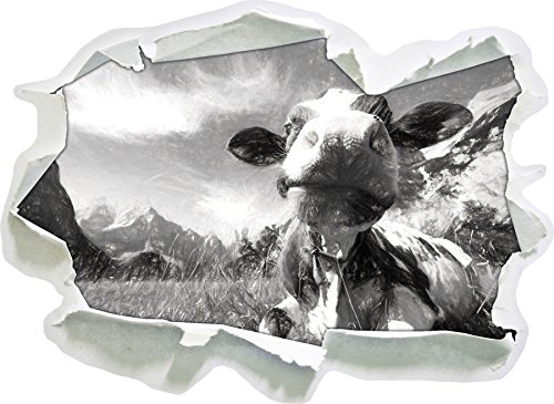 Stil.Zeit Kuh im Karwendelgebirge Kunst Pinsel Effekt Wanddurchbruch im 3D-Look, Wand- oder Türaufkleber Format: 62x42cm, Wandsticker, [...]