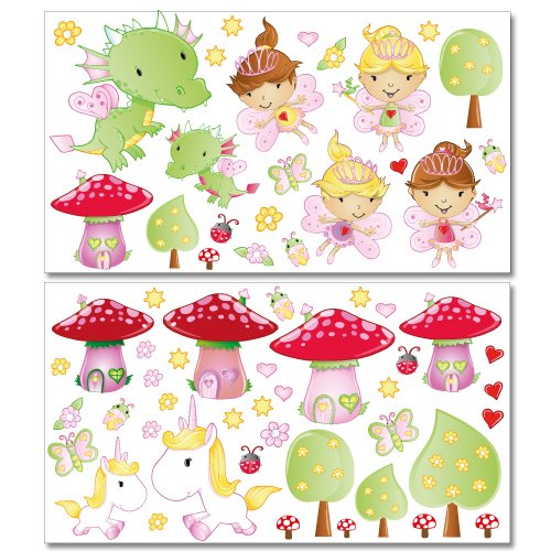 Wandkings Feen Welt Wandsticker Megapack Set, 62 Aufkleber, Gesamtfläche 260 x 70 cm