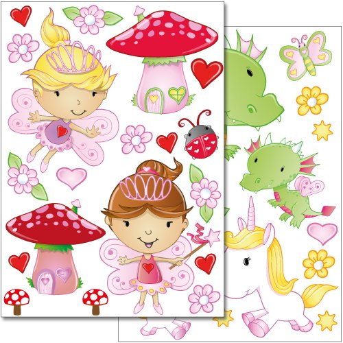 Wandkings Feen Welt Wandsticker Set, 37 Aufkleber, 2 DIN A4 Bögen, Gesamtfläche 60 x 20 cm