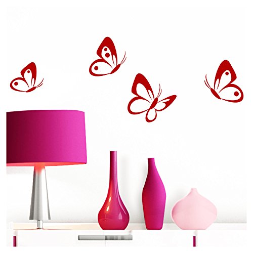 Grandora Wandtattoo 4er Set Schmetterlinge I rot 8-10 cm I Baby Kinderzimmer selbstklebend Wand Aufkleber Wandaufkleber Wandsticker Sticker [...]