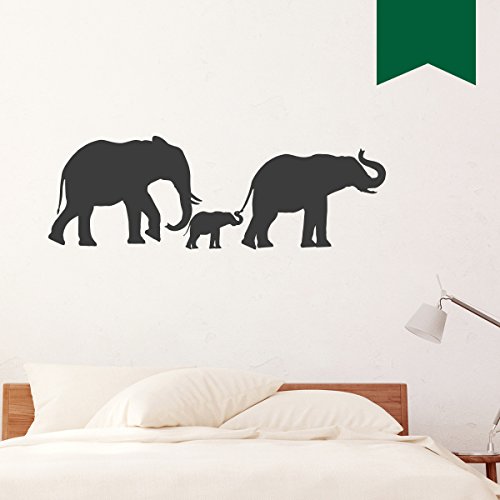 WANDKINGS Wandtattoo Elefantenfamilie mit 3 Elefanten 50 x 16 cm dunkelgrün - erhältlich in 33 Farben