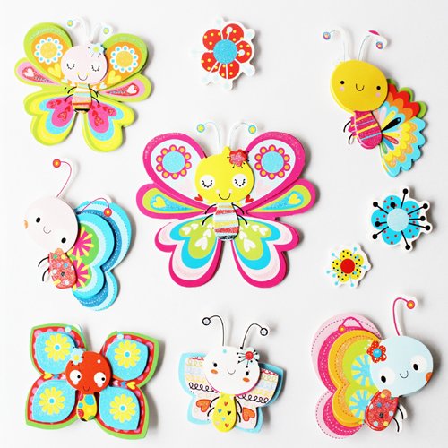 3D Wandaufkleber Wandsticker Wandtattoo mit Glitzer Biene & Schmetterling LT-004