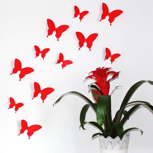 Wandkings Schmetterlinge im 3D-Style in ROT, 12 Stück, Wanddekoration mit Klebepunkten zur Fixierung