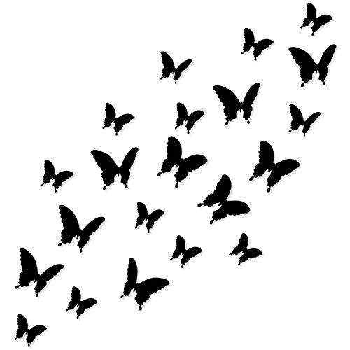 Wandkings Schmetterlinge im 3D-Style in SCHWARZ zur Wanddekoration, 36 STÜCK im Set mit Klebepunkten zur Fixierung