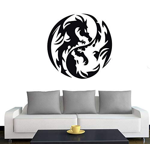 A432 Wandtattoo Yin Yang Drache 60cm x 60cm schwarz (erh. in 40 Farben und 2 Größen)