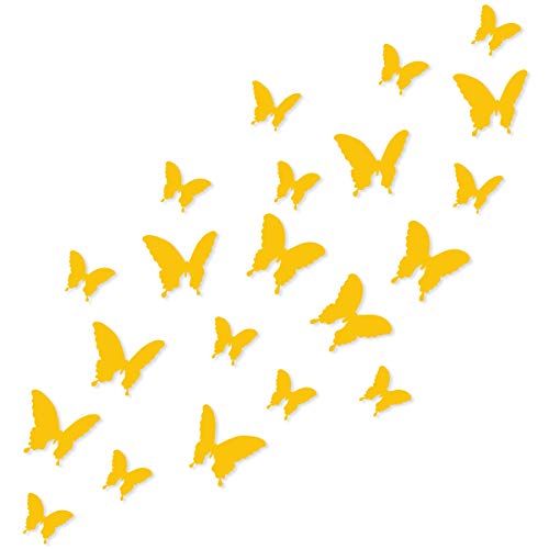Wandkings Schmetterlinge im 3D-Style in GELB zur Wanddekoration, 36 STÜCK im Set mit Klebepunkten zur Fixierung