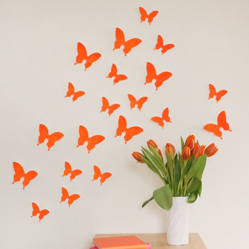 WANDKINGS Schmetterlinge im 3D-Style in NEON ORANGE zur Wanddekoration, 12 STÜCK im Set mit Klebepunkten zur Fixierung