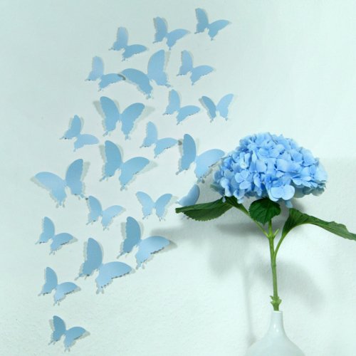 Wandkings Schmetterlinge im 3D-Style in HELLBLAU, 12 Stück, Wanddekoration mit Klebepunkten zur Fixierung