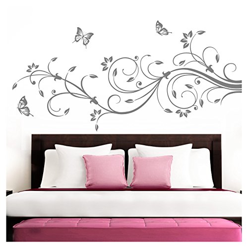 Grandora Wandtattoo XXL Blumenranken Schmetterlinge Blumen I Mittelgrau (BxH) 90 x 39 cm I Schlafzimmer Liebe Flur Wohnzimmer modern [...]
