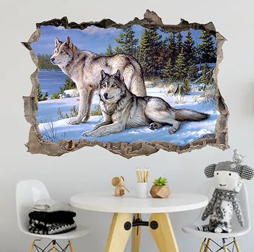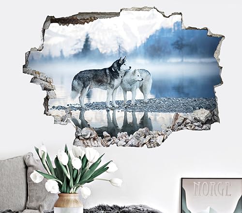 Kuletkear 3D Wandtattoo, Durchbruch Wandaufkleber für Kinderzimmer, Wandtattoos für Wohnzimmer, Tierischer Wolf B 83 x H 55 cm [...]