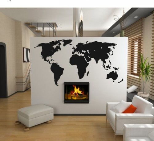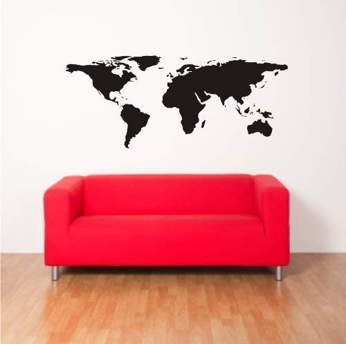 INDIGOS UG - Wandtattoo - Wandaufkleber - w015 Weltkarte 144 x 68 cm, schwarz - Wandsticker für Kinderzimmer, Wohnzimmer, Bad, Dekoration, [...]